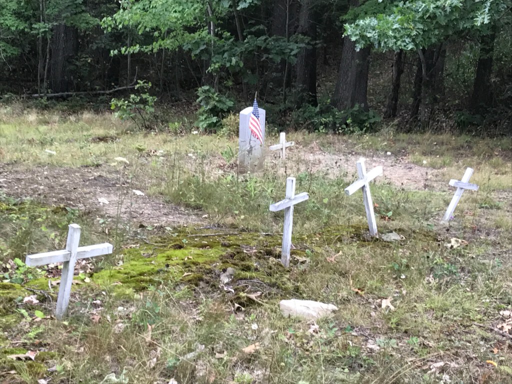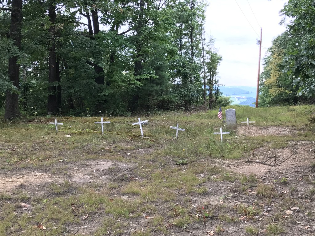 Located high on a hill above Worthville is this old cemetery that has become known as the Mauk Cemetery. In the year 2000 it had only two tombstones, one veteran’s grave marker and 22 wooden crosses marking the graves. When John Mauk (b 1818) and his wife Rachel Clark Mauk purchased the nearby farm, the cemetery already existed. The known burial was that of Samuel Reed who died in March 1846. A very old map has the cemetery marked as the Reed Cemetery. It is believed Rachel and John are buried here, but no markers to that effect exist.